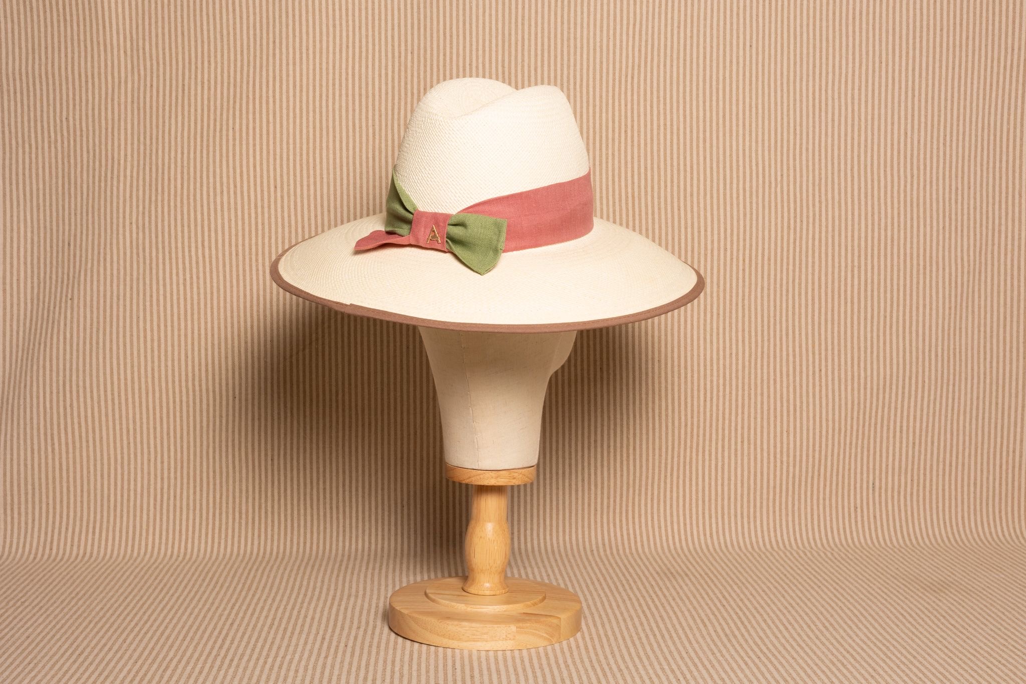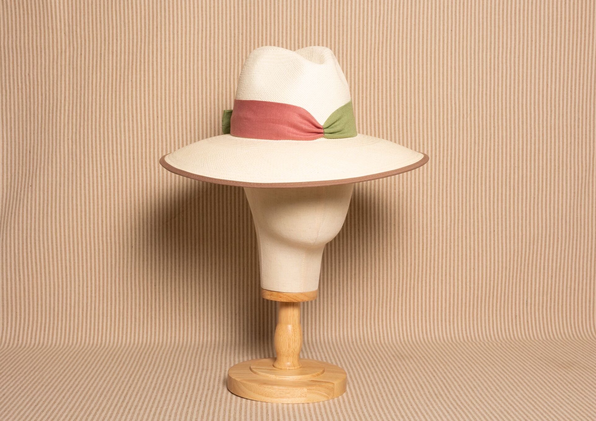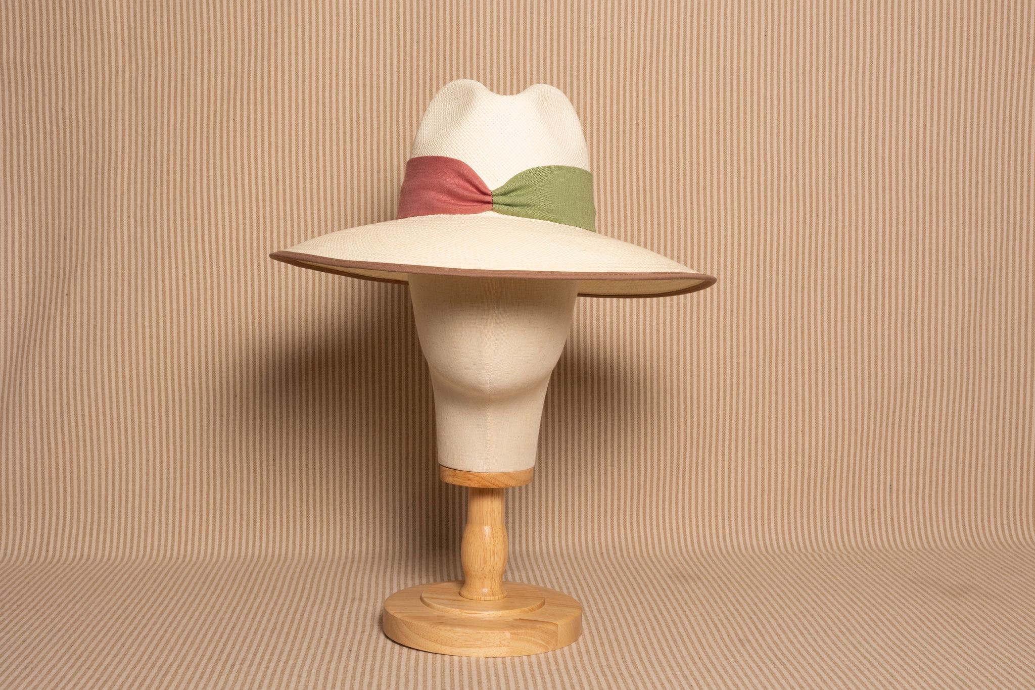 Fedora ala ancha tricolor rosa verde topo