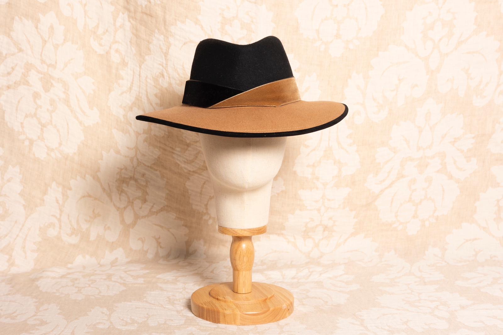 Sombrero ala 8 bicolor negro y camel