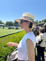 La cinta con rombos geométricos en tonos negro, beige y terracota le da una identidad única, ideal para mujeres que buscan diferenciarse con accesorios de autor. La copa alta de 12 cm estiliza el rostro, mientras que el ala de 9 cm cóncava proporciona un marco armonioso y envolvente, muy favorecedor.