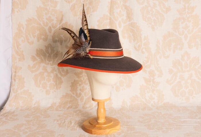 Fedora marrón espiga y ribete verde