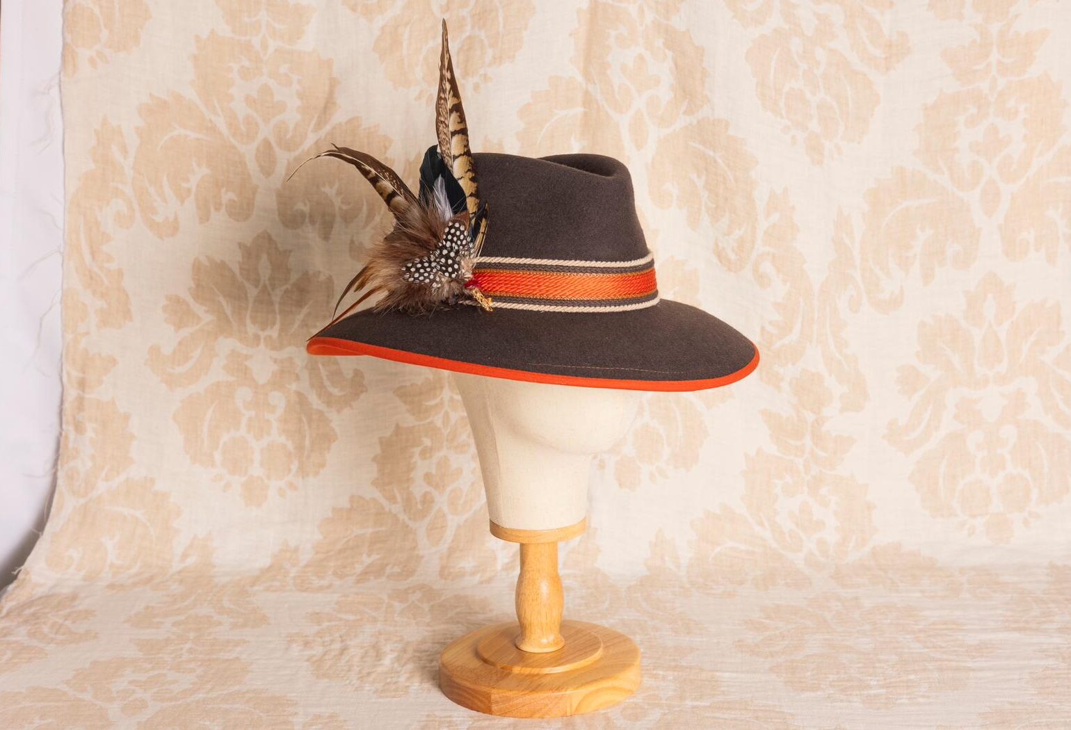 SOMBRERO ALA 9 topo Terracota- plumas XXL