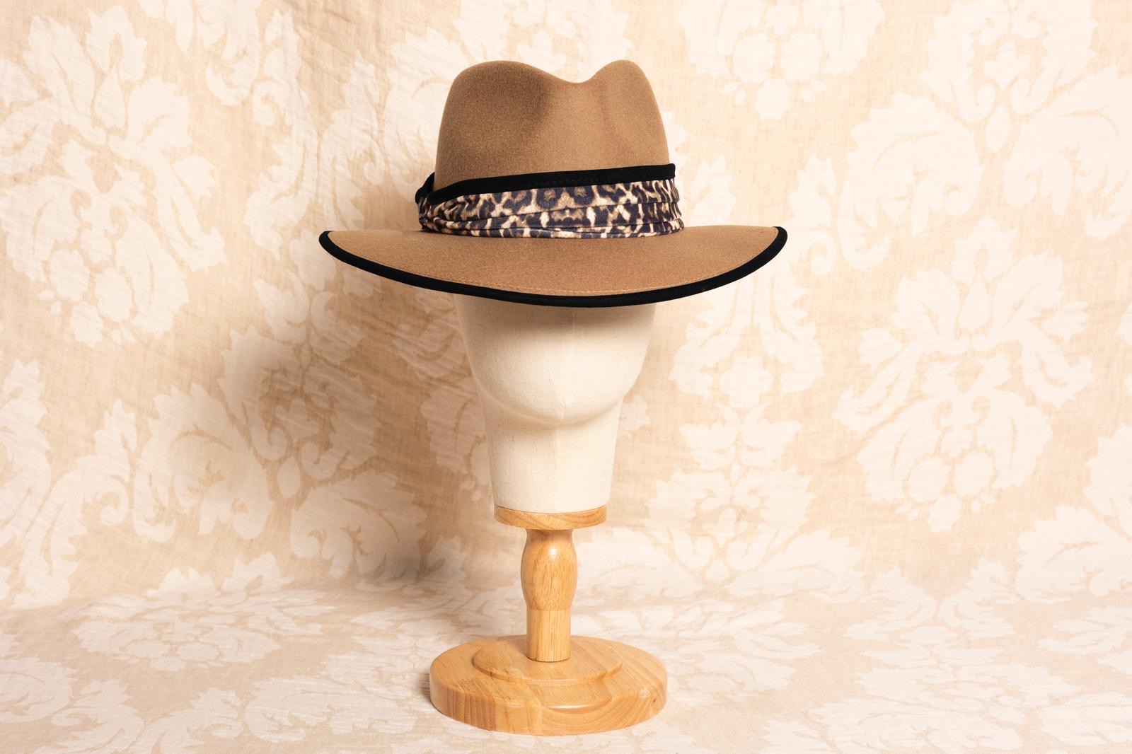 Sombrero fedora animal print de lana Merino 100% impermeable