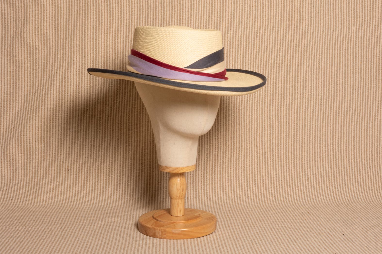 SOMBRERO OVALADO CRUDO TOQUILLA RAYAS BURDEOS