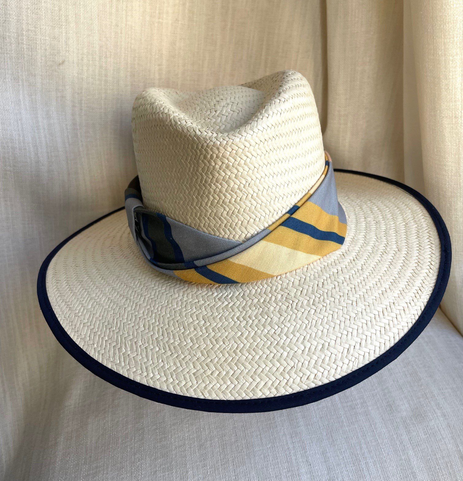 SOMBRERO PAÑUELO RAYAS AZUL MOSTAZA-ALA 9 CM